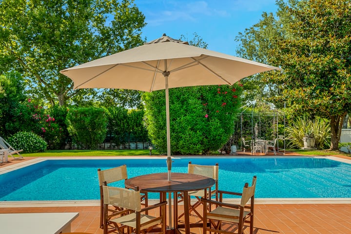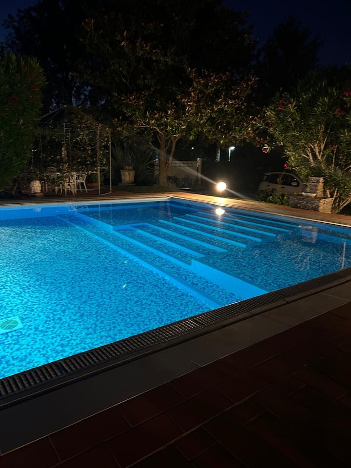 Detta är ett av få boenden i området med pool.