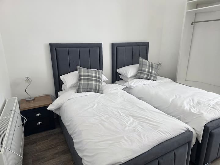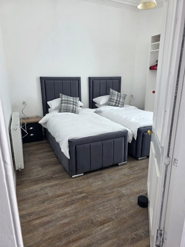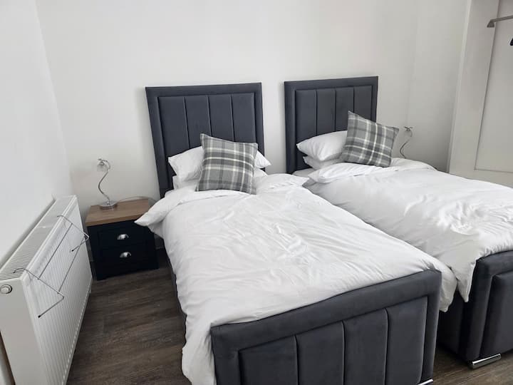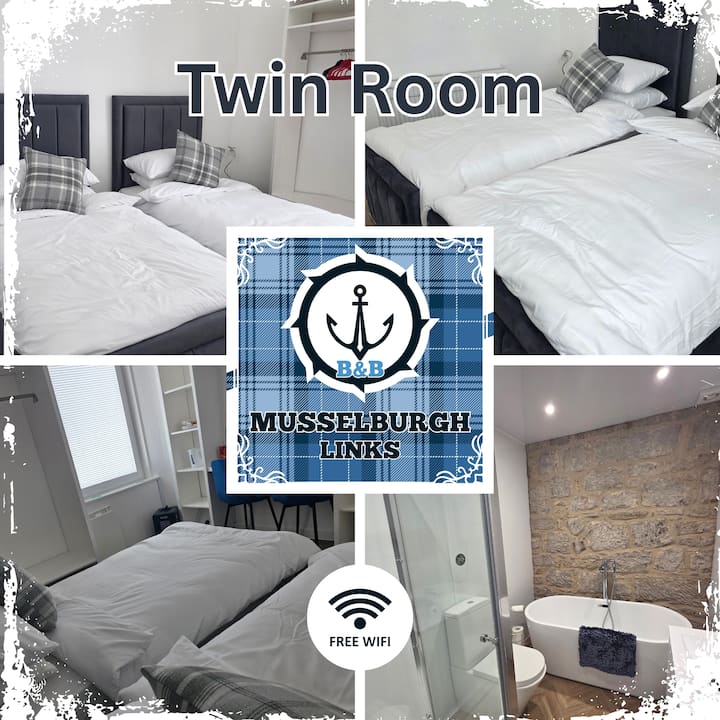 Njut av en bekväm vistelse i vårt ljusa och välkomnande dubbelrum på Musselburgh Links B&B. Med två enkelsängar är detta rum perfekt för vänner, familjemedlemmar eller ensamresenärer som behöver separata sängar. Gäster har tillgång till ett modernt delat badrum bara några steg bort. Mitt i hjärtat av Musselburgh ligger du bara några minuter från stranden och den världsberömda golfbanan, med centrala Edinburgh bara 7 minuters tågresa bort.