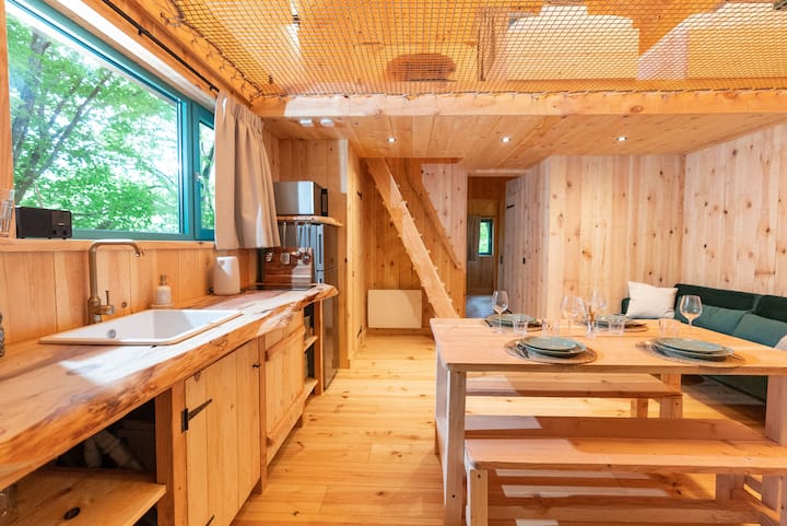 Rachel, arkitekt och Matthieu, passionerad av trä, föreställde vi oss Pic Perché, en plats för paus och återanslutning, enkelhet och komfort.
