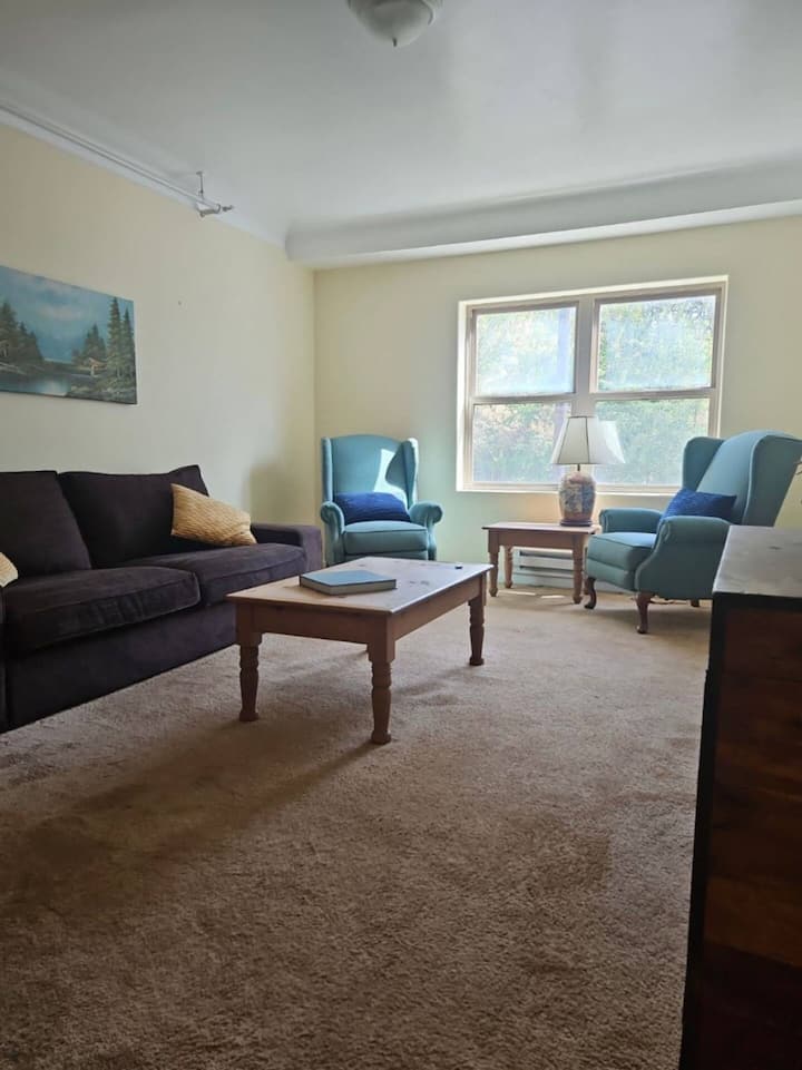 Koppla av och varva ner i det mysiga gemensamma vardagsrummet, ett välkomnande utrymme utformat för komfort och kontakt. Oavsett om du läser en bok, njuter av ett lugnt samtal eller helt enkelt tar en stund för dig själv, inbjuder detta utrymme dig att sakta ner och känna dig bekväm.