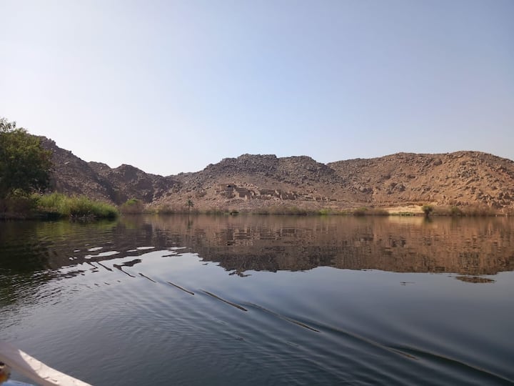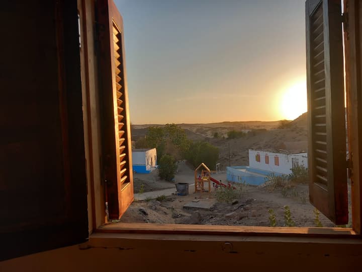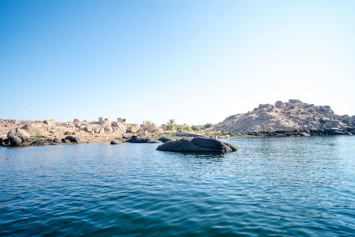 Mysigt nubiskt hus på en fridfull ö nära Philae