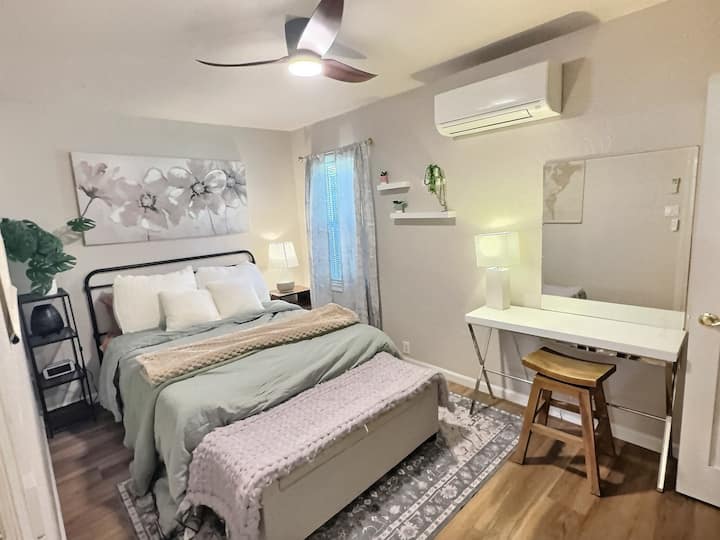 Mysigt rum i centrala Redding/Queen-säng/Skrivbord