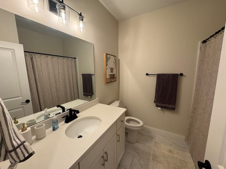 Denna moderna och rymliga 3BR/3BA-lägenhet kombinerar stil, komfort och bekvämlighet, vilket gör den idealisk för familjer, affärsresenärer eller grupper. De öppna vardagsrummen, matplatserna och köksområdena har trägolv på hela bottenvåningen, vilket skapar en ljus och inbjudande atmosfär. Det stora sovrummet har ett stort badrum, medan två ytterligare sovrum och badrum ger gott om utrymme och integritet. En lounge på övervåningen erbjuder extra utrymme för att koppla av, arbeta eller umgås.