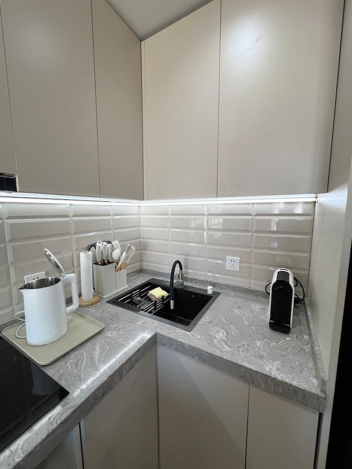 Ljus och ren 1BR med utsikt över staden, central plats