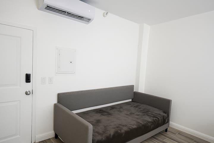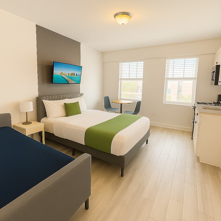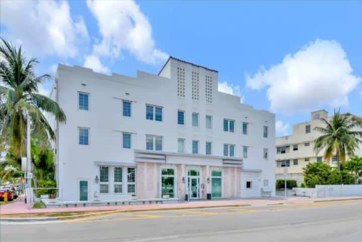 *Ingen parkering*. Bo i en charmig Art Deco-byggnad ett kvarter från stranden. Gå till Faena Club, restauranger, livsmedelsbutik och Starbucks. Hela studion är din. Koppla av i en bekväm säng, använd pentryt och njut av ett modernt badrum. Beundra utsikten över Indian Creek från fönstret.