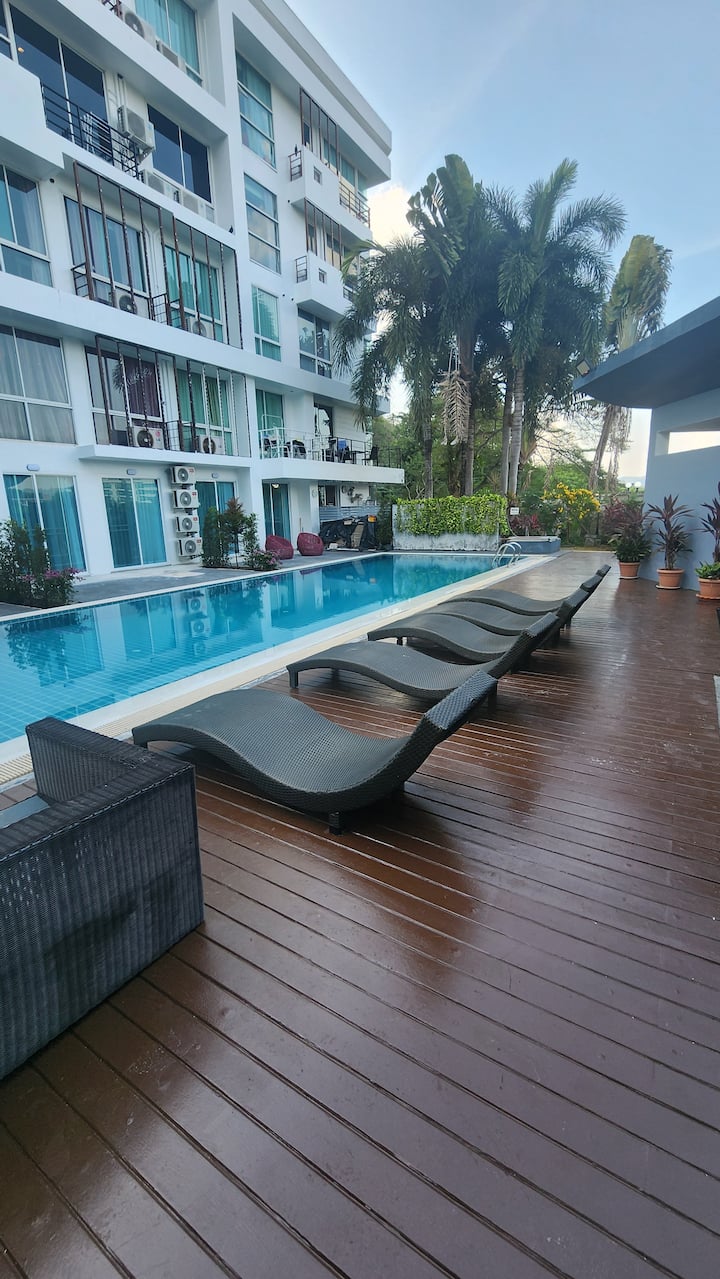 Modern 2BR Lägenhet – Wifi, Pool, Kök, Patong