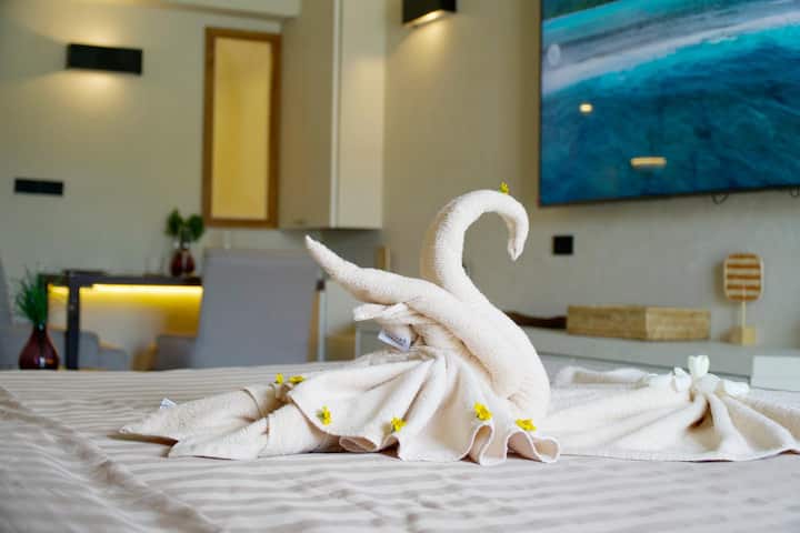 Ultimat komfort | Jättesäng och 85-tums biograf-TV