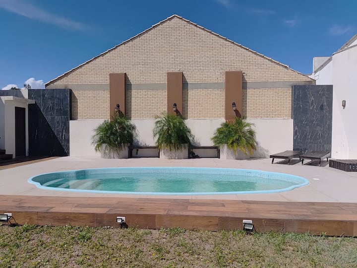 Detta är ett av få boenden i området med pool.