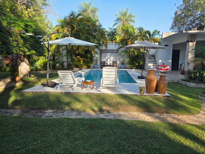 Detta är ett av få boenden i området med pool.