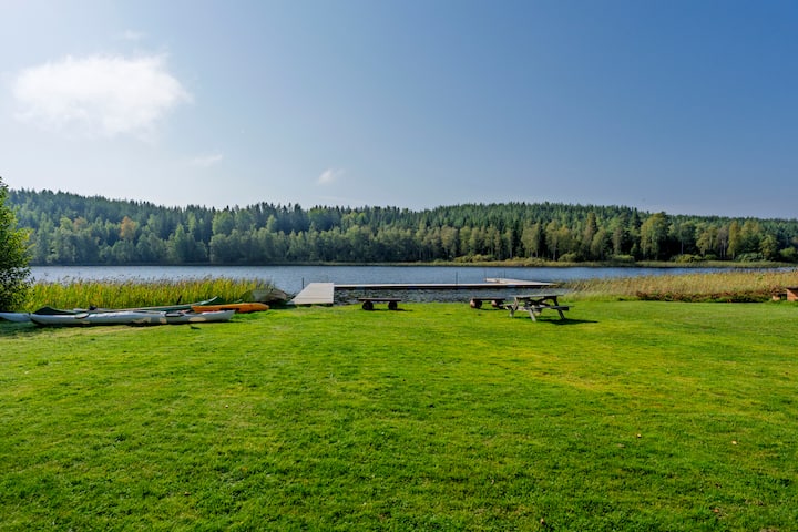 Här bor ni med utsikt över sjön med nära till bad. I omgivningen finns både skog och öppna landskap. Här får ni uppleva naturen på nära håll.