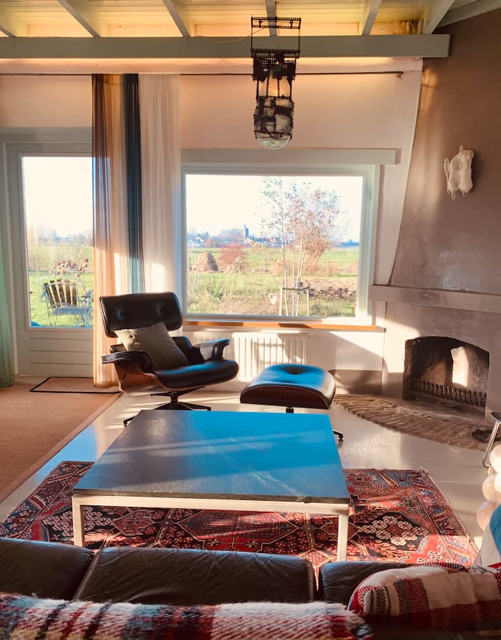 Fantastisk plats i ängarna vid floden Waal