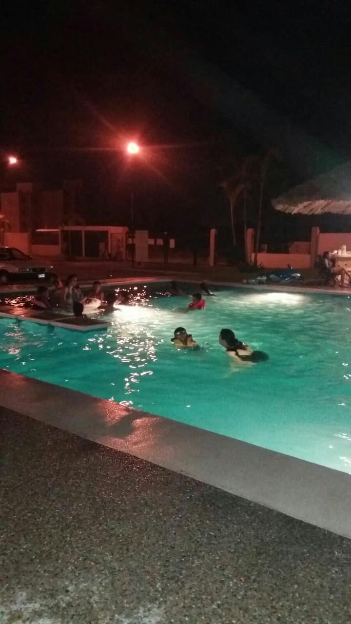 Detta är ett av få boenden i området med pool.