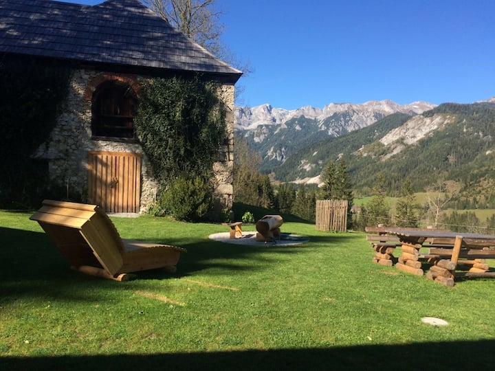 Jag renoverade en vacker gammal bondgård där mina gäster ska känna sig helt bekväma. Den ligger på en kulle ovanför den lilla byn St. Ilgen med en magnifik utsikt över Hochschwabmassiv.