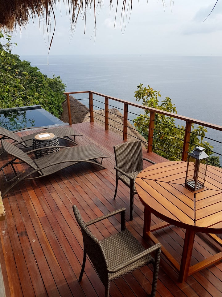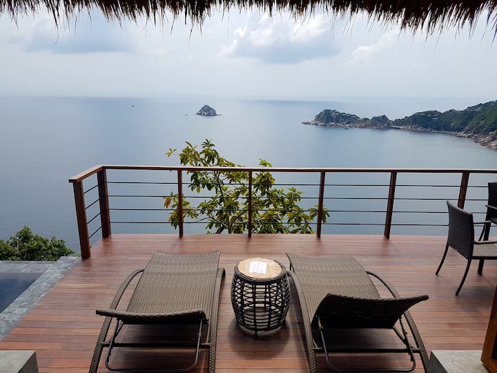 Varje villa har en egen oändlighetspool med fantastisk utsikt över bukten i Thailand.
