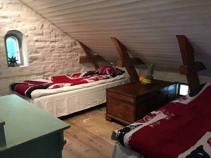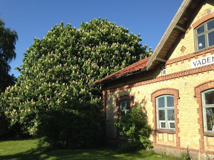 Vi är ett par som hittade vårt drömhus. Här bor vi med hund, katt och höns. Huset är ett gammalt stationshus från 1876. Vi älskar charmen med alla gamla detaljer och kände att vi gärna ville att andra skulle kunna ta del av huset och den vackra omgivningen. Vi har fortfarande mycket att göra klart i huset men känslan och karaktären finns kvar och det vill vi förvalta så att andra också kan få ta del av detta fantastiska hus.