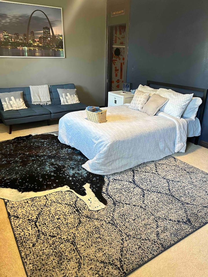 Vi är båda utbildare, vi har internationellt antagit 17-åriga tvillingar (pojke/flicka) och är djurälskare. När vi inte arbetar njuter vi av naturen som camping, vandring, cykling och trädgårdsarbete. Vi är både kaffe- och vinentusiaster. Vi har bott i stan i 13 år och älskar mångfalden och livligheten i St. Louis! Vi är nära motorvägar, SLU, fantastiska parker inom gångavstånd och en mängd utmärkta restauranger och kaféer.