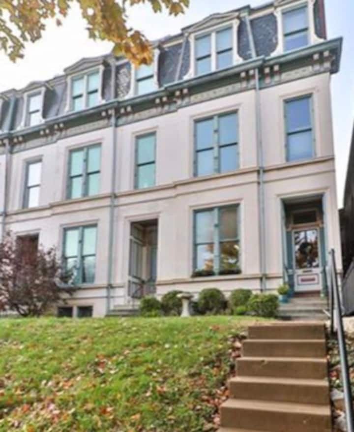 Historiskt hem-3:e våningen med utsikt över stadssilhuetten