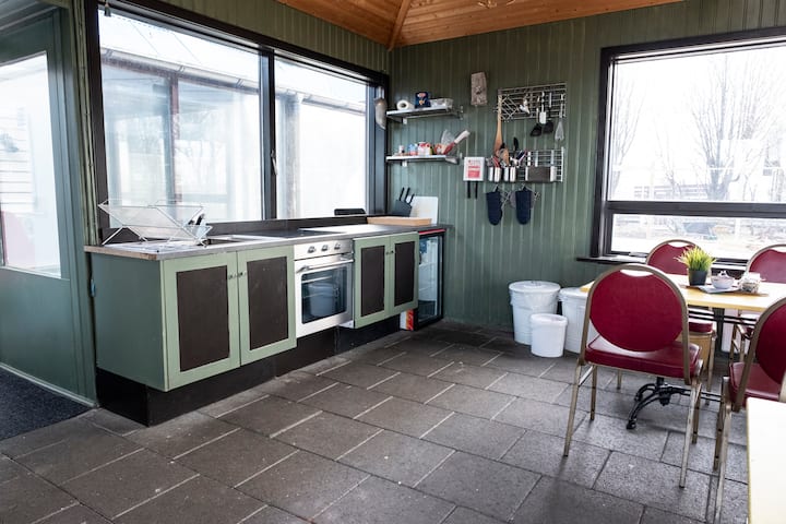 Mysigt hus stuga #2 – med hästar, får och vulkan