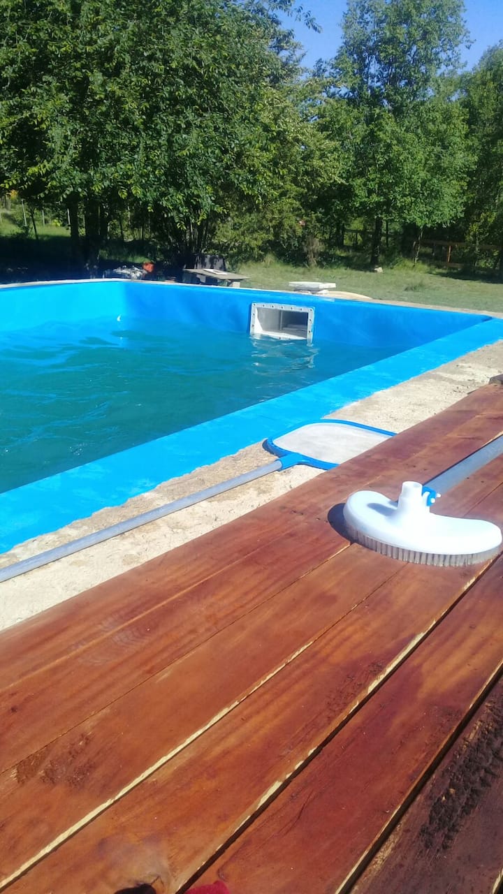 Detta är ett av få boenden i området med pool.