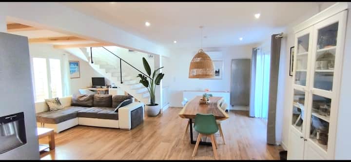 Stort hus på 120 m2 med exotisk trädgård.