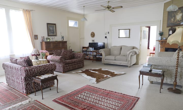 Bill är född och uppvuxen på östkusten och Jan är ursprungligen från Taranaki på västkusten. Vi har uppfostrat och hemundervisat 6 barn här på kusten, varav 3 fortfarande är hemma. Vi bor på 4 tunnland mark och mjölker en ko, föda upp får, ankor, hundar och 200+ kycklingar. (så frigående ägg finns på frukostmenyn) Vi bor inte på plats men ca. 1 minuters bilresa bort. Vi möts och hälsar våra gäster välkomna och bosätter dem i postkontoret. Vi är bara ett telefonsamtal bort och är tillgängliga för att ge lokal kunskap och involvera gäster i bylivet. Jan och Bill har rest i sina yngre dagar och brukade vara kock och butler för Lord och Lady Rootes i Berkshire, England. Vi har också rest med vår familj här i Nya Zeeland, Australien och några av Stilla havet. Livet på kusten är unikt, enkelt och avslappnat och vi vill gärna tro att vi som en familj är så benägna.
