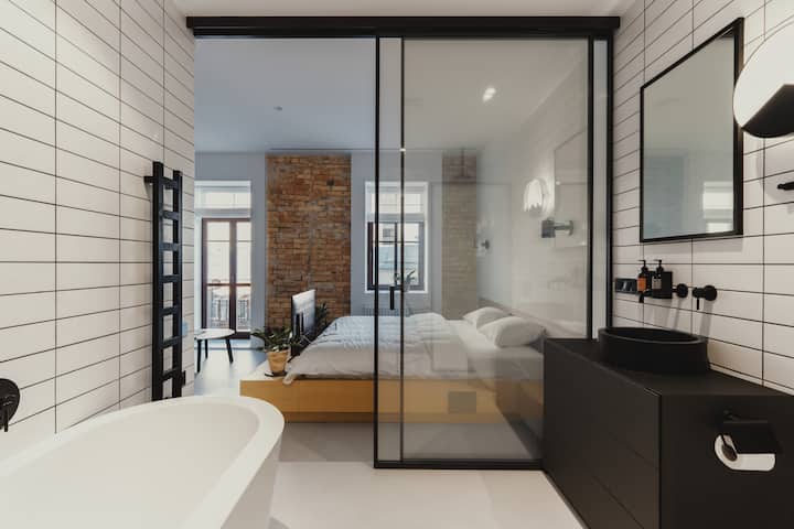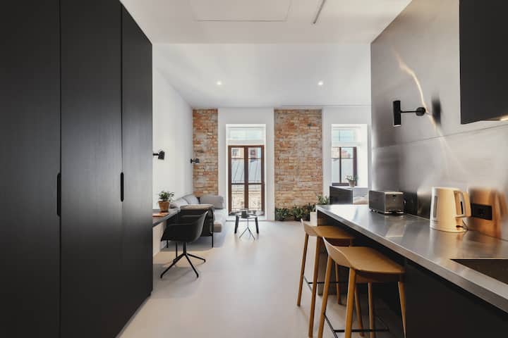 Vårt hotell har 5 hela lägenheter, alla med en unik design. Alla lägenheter har sitt eget kök och badrum och allt som behövs för en bekväm vistelse.