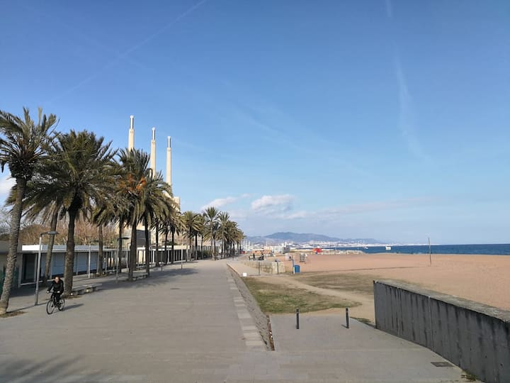 STRANDNÄRA. TERRAS. 15 MIN TILL RAMBLAS MED TÅG