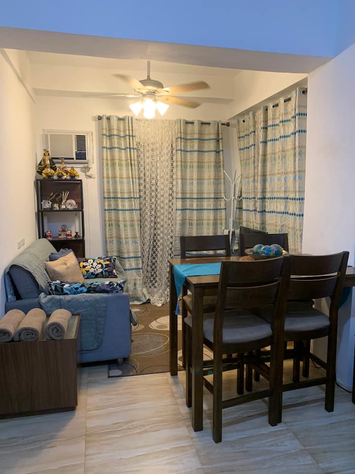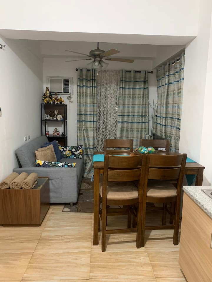 Denna mysiga lägenhet med 1 sovrum ligger i det fridfulla, trädkantade samhället AppleOne Banawa Heights och är den perfekta korttidsflykten för ensamresenärer, par eller affärsresenärer. Klev in i ett utrymme som känns som hemma — ljust, rent och genomtänkt inrett för komfort. Oavsett om du dricker ditt morgonkaffe på balkongen, lagar en lugn middag eller helt enkelt njuter av en vilsam natt efter att ha utforskat staden, har detta utrymme utformats