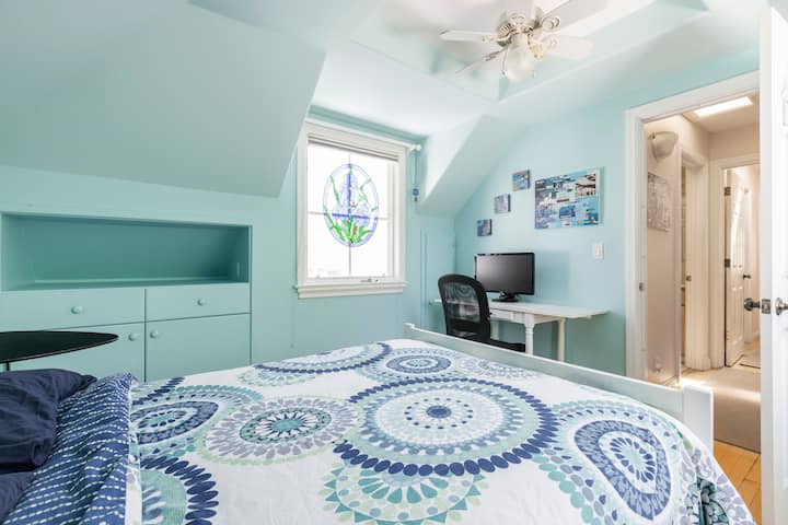 Fantastiskt läge fem kvarter från University Ave och den livliga aktiviteten i centrala Palo Alto. En enkel 20 minuters promenad eller 10 minuters cykeltur tar dig på Stanford campus. Charmig, säker och fridfull oas i ett tyst bostadsområde. Iris House är en målad dam viktoriansk med vackra trädgårdar och färgglada konstverk. Detta ljusa rum har moderna bekvämligheter och superbekväm säng.