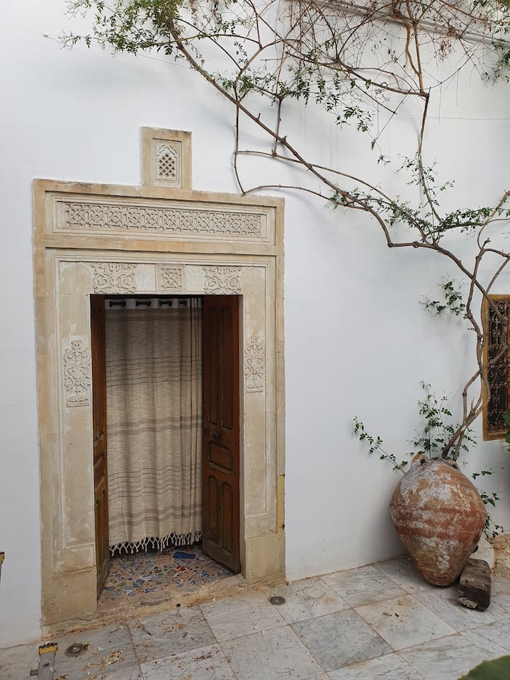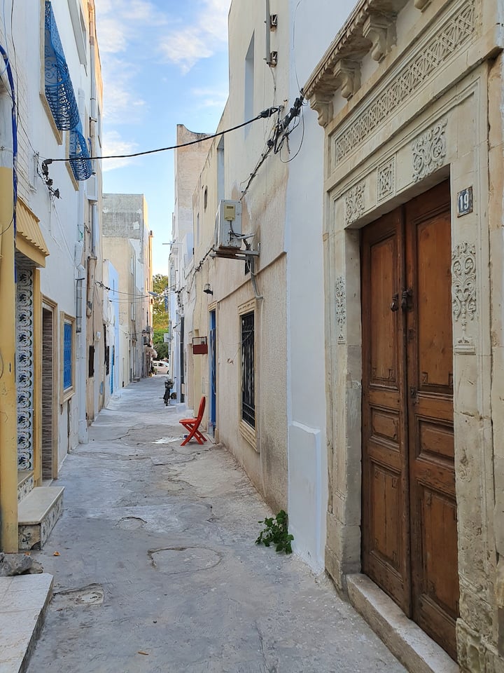 Atypiskt hus i medinan nära stranden