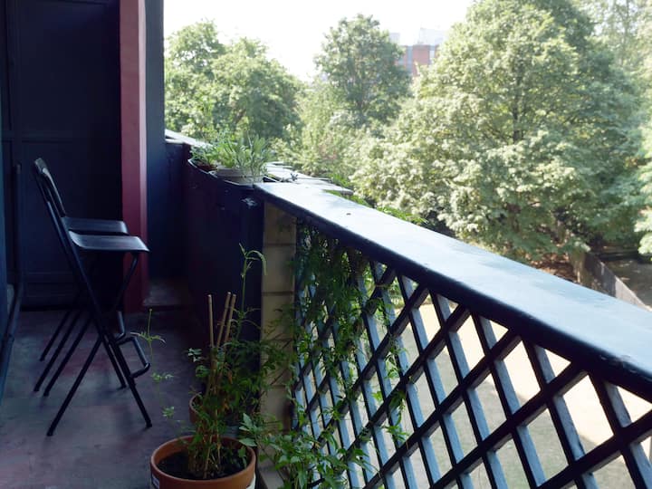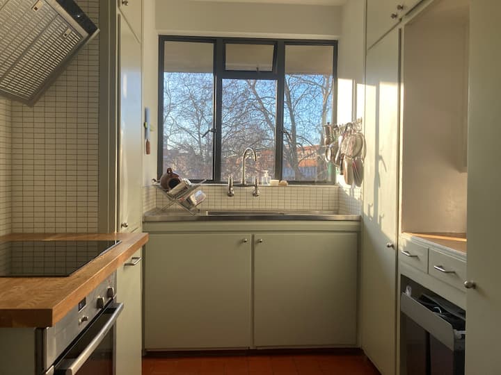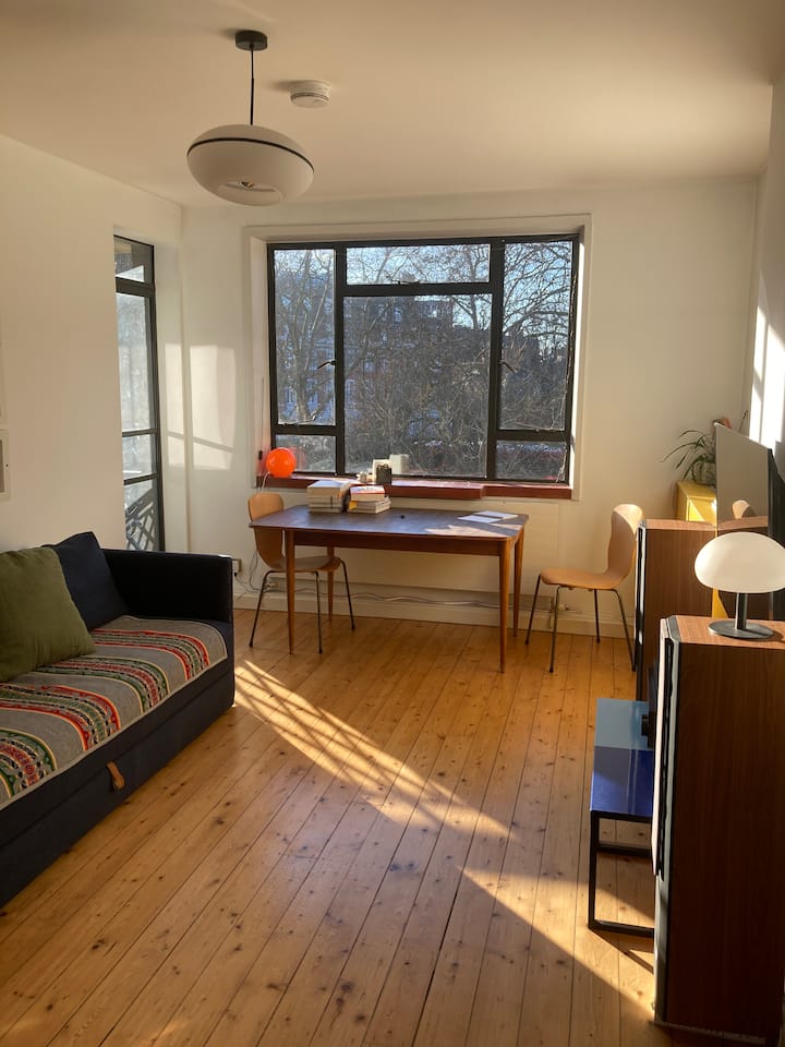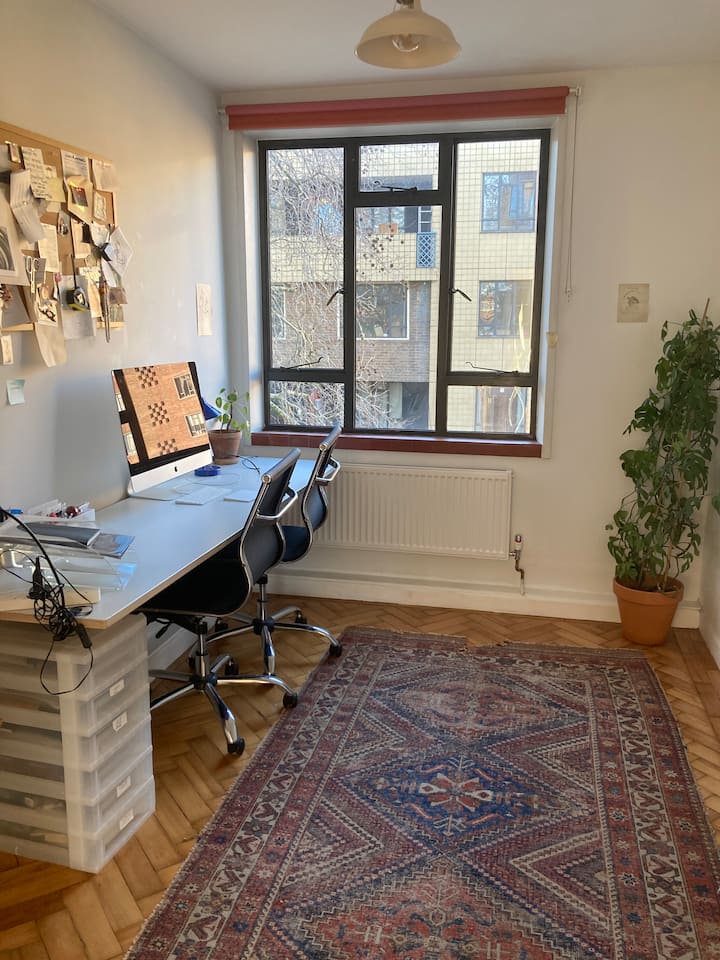 Ljus Clerkenwell lägenhet med balkong och arbetsyta