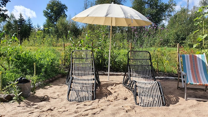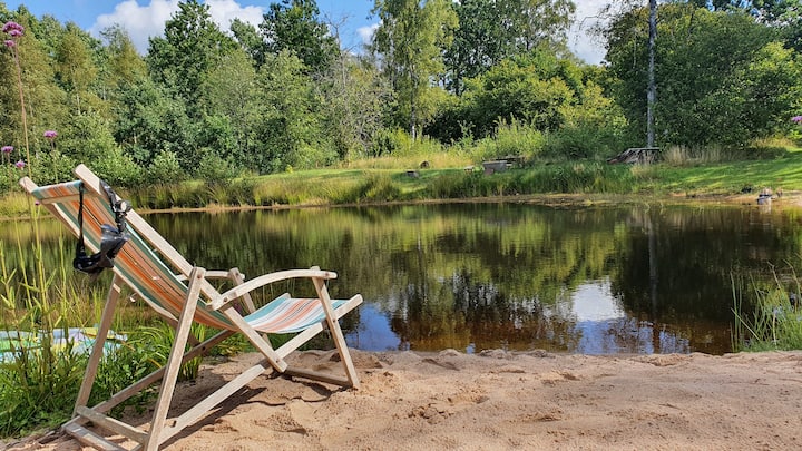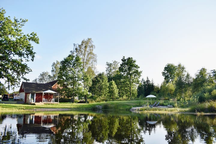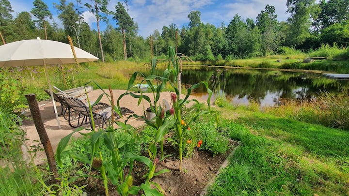 Himlakull B&B. Naturskönt nära skogen med baddamm.