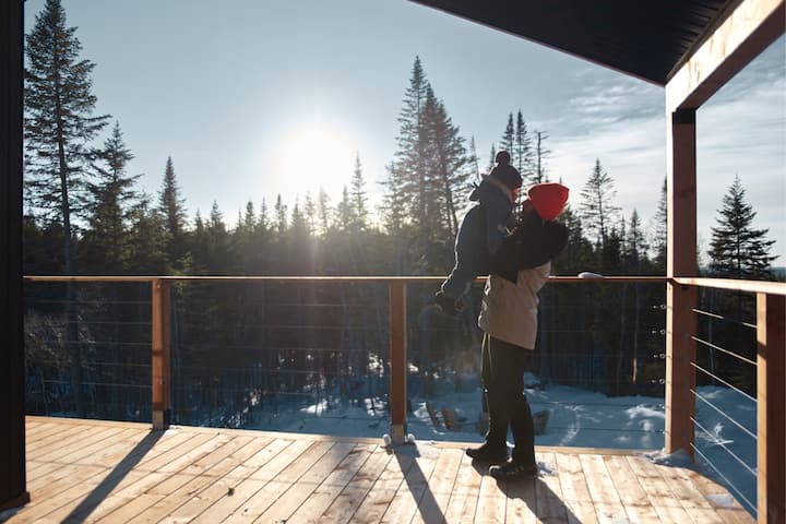 Läge: 25 minuter från Quebec City, mitt i naturen/berget, utsikt över solnedgången. Direkt tillgång till vandring/snöskor/längdskidåkning och mountainbike/fatbike från stugan.