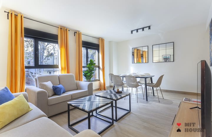 Ligger i en byggnad med hiss, på andra våningen. Den har WiFi-anslutning. En fantastisk möjlighet att lära känna staden Madrid!
