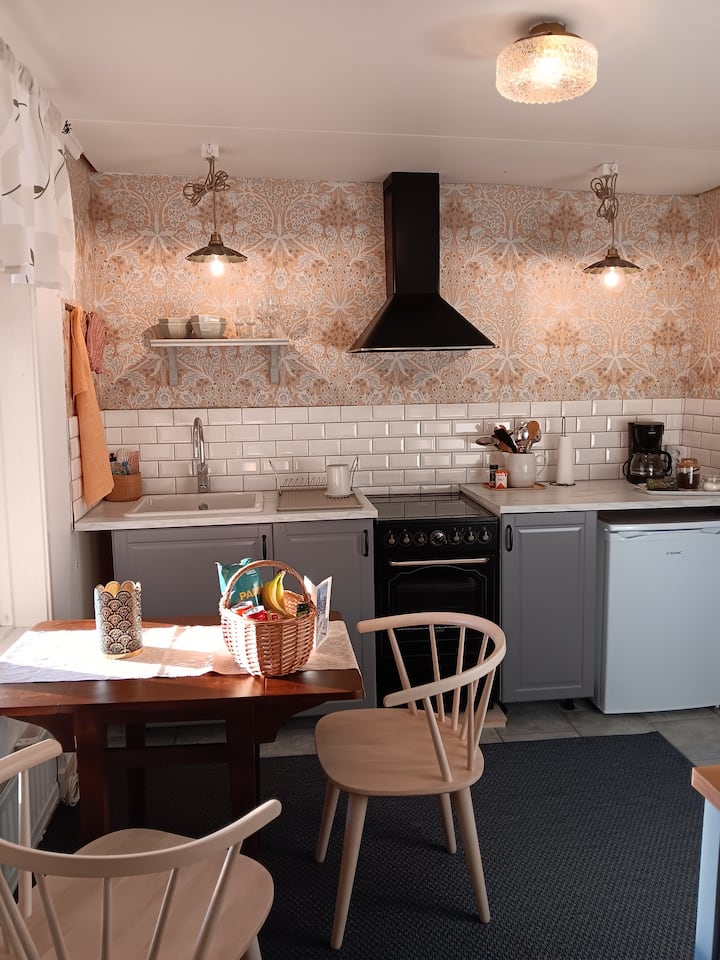 Perfekt för sommarresan: eldstad, matplats utomhus, grillplats och utemöbler.