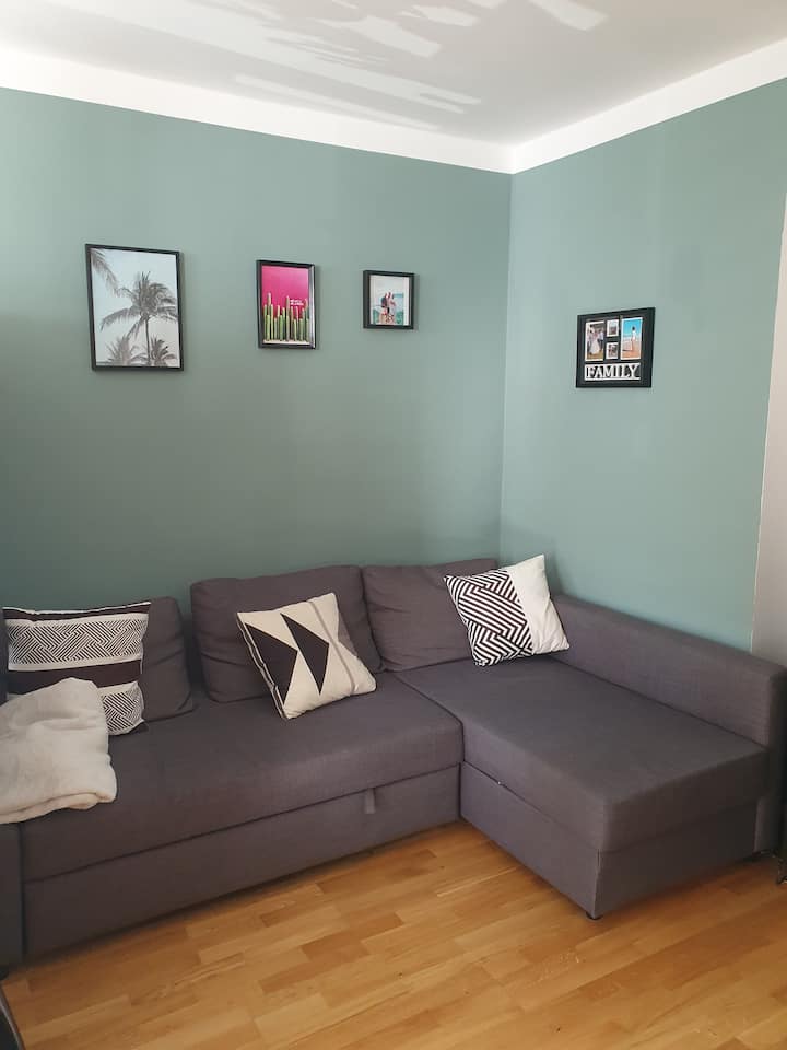 Ljus lägenhet med balkong, nära Olympiaparken