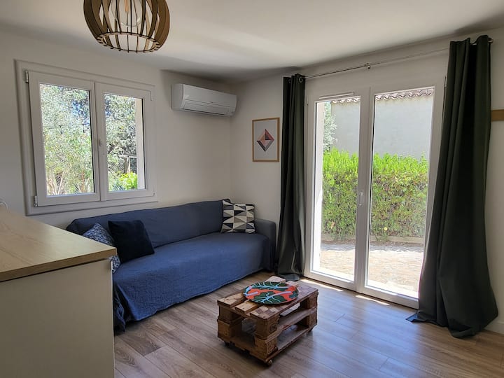 Lägenhet i villa T2, 45 m², luftkonditionering och trädgård