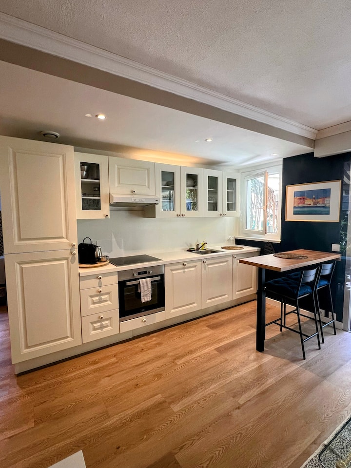 Fantastisk lägenhet med trädgård och privat parkering