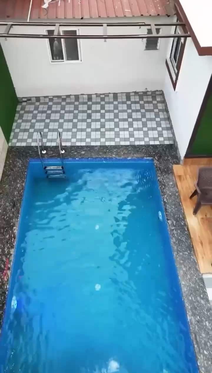 Detta är ett av få boenden i området med pool.