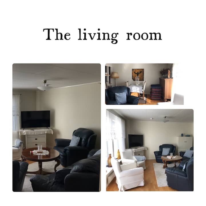 Huset är byggt 1996 och du som gäst bor på första vången och jag, värden, bor på övervåningen.