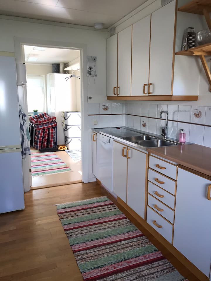 Två gäster ingår i grundpriset . Rum Kungsö, dubbelsäng, 180cm. Kök, vardagsrum och badrum. Ni delar inte boendet med någon annan.