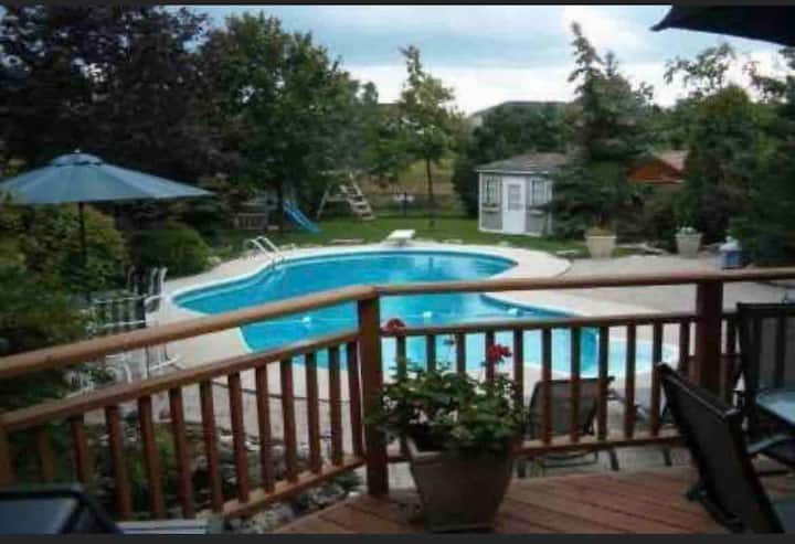 Egen utomhuspool – tillgänglig vissa årstider, öppet vissa tider, poolleksaker, pooltäckning, saltvatten