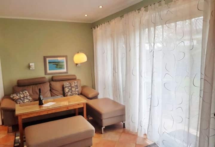 Vårt lilla, helt renoverade semesterhus ligger i ett lugnt läge i semesterorten Timmendorf Strand, precis i utkanten av ett fält, bara 3 minuters promenad från den vackra Östersjöstranden.