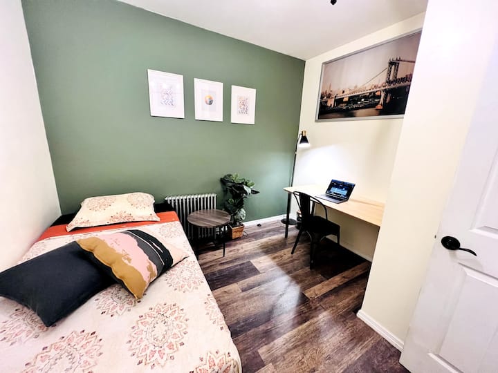 Denna lägenhet ligger 5 minuters promenad från Subway Hub i Queens. Närmaste tunnelbanestation är "Roosevelt 74st" som har 5 tunnelbanelinjer, E/F/M/R/7. Det kommer att ta dig överallt man vill åka. Om du tar expresslinjen tar det bara 15 minuter till Manhattan.