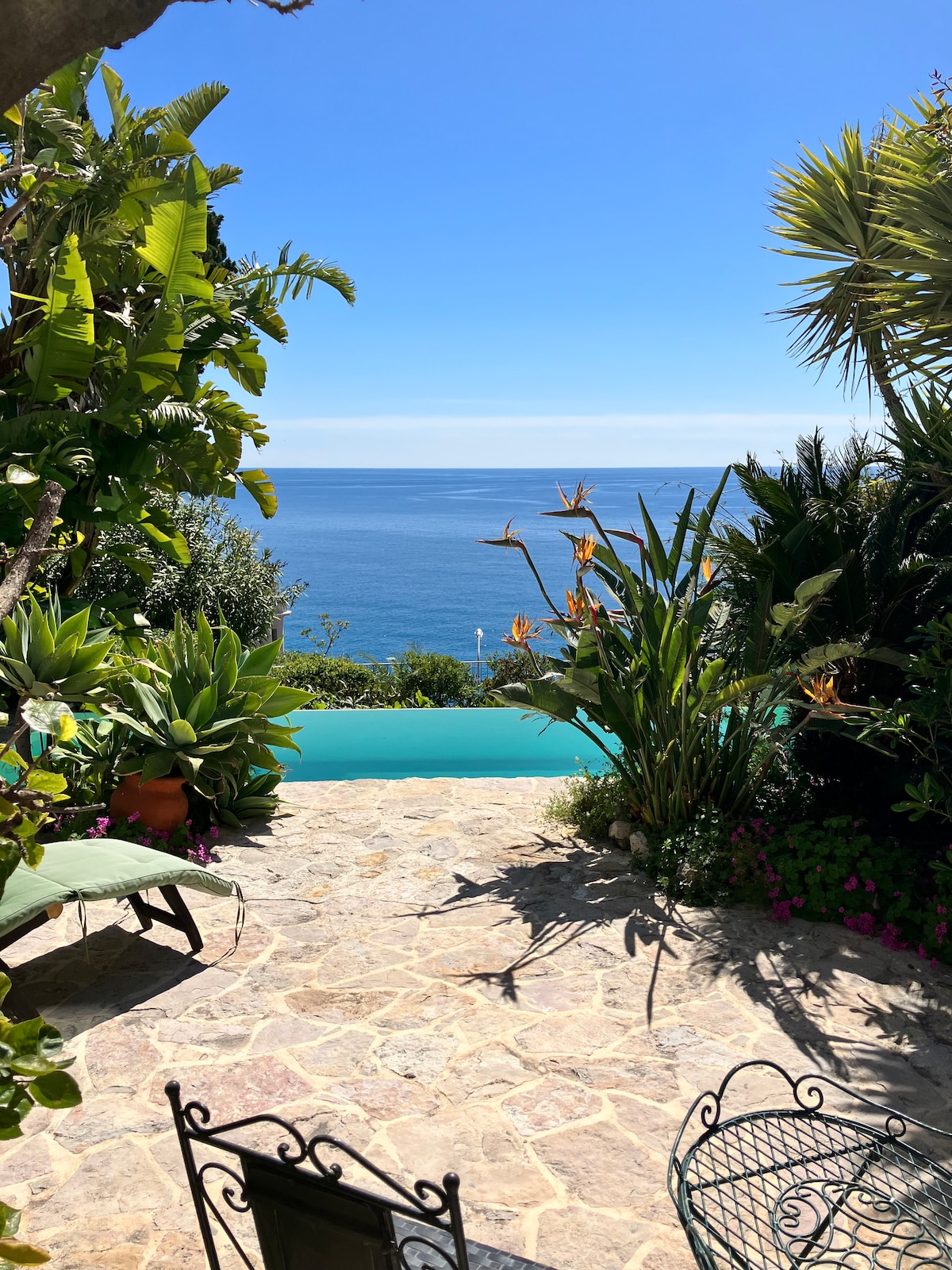 Njut av hisnande 180-graders utsikt över Medelhavet när du går ut på den privata terrassen i denna lägenhet. Den moderna bohemiska inredningen har en ren, vit estetik accentuerad av chica möbler och utsmyckade föremål. En verkligt 5-stjärnig upplevelse, några minuter från Furstendömet Monaco. Njut av den bästa utsikten över Golfe Bleu i den legendariska Cote D'Azur och njut av lyx och komfort. Förutom en hisnande 180° utsikt över havet i hjärtat av Cote D'Azur och en romantisk boho chic inredning, här är några viktiga funktioner du kommer att älska: LUFTKONDITIONERING -> Ett premium A/C-system har nyligen installerats i både vardagsrummet och sovrummet. Det kan också fungera som ett värmesystem. KÖK -> Köksredskap, fullt bestick och porslin, flera apparater (Lavazza kaffemaskin med gratis kapslar, mikrovågsugn, ugn, diskmaskin, elektriska brännare, kylskåp, frys, premium mixer, brödrost, köksskala, klämma). Olivolja, vinäger, salt, socker och annat finns. VARDAGSRUM --> TV, 6 sittplatser matbord, bäddsoffa (rymmer ytterligare en person), USB-högtalare, bagageförvaring BADRUM -> XL dusch, toalett, bidé, hårtork, curlingjärn SOVRUM -> havsutsikt från sängen, 160X195 cm säng med premium sängkläder, stor dubbel garderob med lådor och hängare, rulljalusier. -- > + En VÄLKOMSTGÅVA! Lägenheten är helt tillgänglig för dig. Den är idealisk för 2 personer men kan rymma 1 till på bäddsoffan. Du kan antingen komma åt byggnaden från huvuddörren som fungerar med en magnetisk nyckel eller från den privata parkeringen (våning-2). Antingen jag eller en medvärd kommer att välkomna dig vid incheckningen. Jag är hjälpsam, pålitlig och exakt, precis som jag skulle vilja att min Airbnb-värd är när jag reser som gäst. För att hjälpa dig har jag förberett en mycket detaljerad husmanual som du kommer att få via e-post när du har slutfört din bokning. Även om jag inte alltid är i närheten har jag ordnat några medvärdar som kan hjälpa dig i händelse av en nödsituation. Men jag är tillgänglig på telefon hela tiden, 7 dagar i veckan. Jag är samarbetsvillig, lätt att gå och villig att tillfredsställa dina önskemål. Tveka inte att kontakta mig ! Lägenheten ligger i ett naturskönt läge mot Golfe Bleu, en romantisk plats i Cote D'Azur. Ta en pittoresk promenad längs klipplederna, sprid ut dig på de soliga stränderna en kort promenad bort och upplev Monacos berömda sevärdheter i närheten. Det platta läget är lämpligt både för dem som gillar att ha en panoramavandring eller för dem som hellre föredrar att ta bilen för att utforska området. Fyrstaden Monaco ligger 4 minuter bort med bil, medan det tar 20 minuter att nå gränsen till fots. Nice internationella flygplats ligger 35 minuter bort med bil (34 km). Ett bra transportalternativ till/från flygplatsen är Airport Express-bussen (# 110) som förbinder både Nice flygplatsterminaler till Menton och gör ett stopp 1 minuters gångavstånd från min lägenhet. Buss #100 stannar 1 minut från lägenheten (4 Chemins rondell) och går från Menton till Nice, passerar genom Monaco. PARKERING --> Garaget är ett bra plus i min lägenhet eftersom parkering på gatan i detta område är ganska svårt. Det är mycket lätt att nå från huvudvägen och det är anslutet till lägenheten via en hiss. Garagestorlek: 4,9 m (längd) X 2,8 m (bredd) x 1,85 m (höjd).