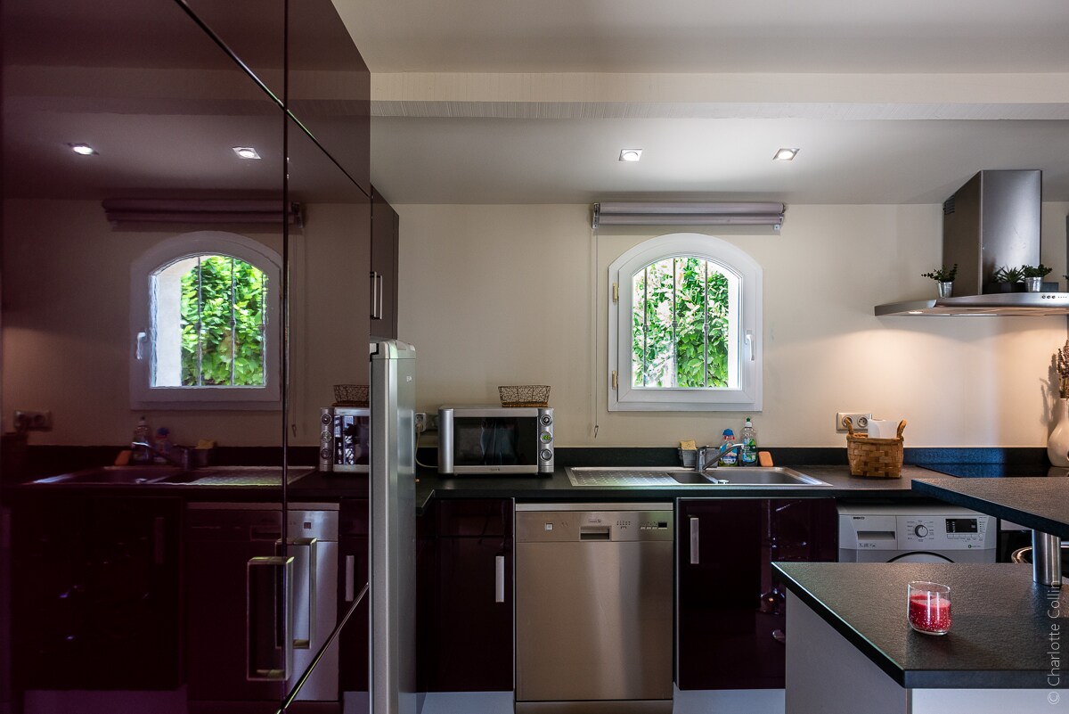 The Mas includes a very quiet air-conditioned 2-room apartment in the middle of the vineyards, not overlooked. 5 minutes from the A9 motorway, this independent 2/3 room apartment with equipped kitchen, large double bed (140cm) and 2-seater sofa bed (160cm) with mattress (19cm). If booked for 5 people, we open an additional connecting room with 1 bed for 1 person in 120 cm. This third room can also be booked for 3 or 4 people by indicating a reservation for 5 people.