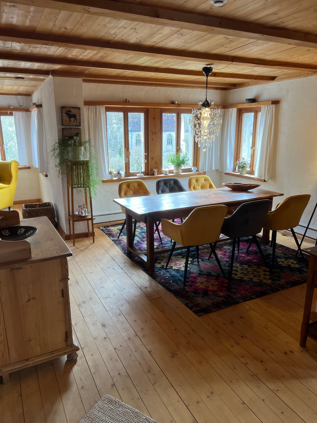 Lägenheten ligger på översta våningen i ett kärleksfullt restaurerat medborgarhus från sekelskiftet i Creglingen (17 km till Rothenburg) På bottenvåningen finns ett café där du kan äta frukost under veckan. (inkluderad) I grannhuset ligger vårt bageri. Cyklar kan ställas undan. Efter samråd är gäster välkomna att ta en titt i bageriet. Lägenheten, köket och badrummet är utrustade med allt du behöver. Inga husdjur