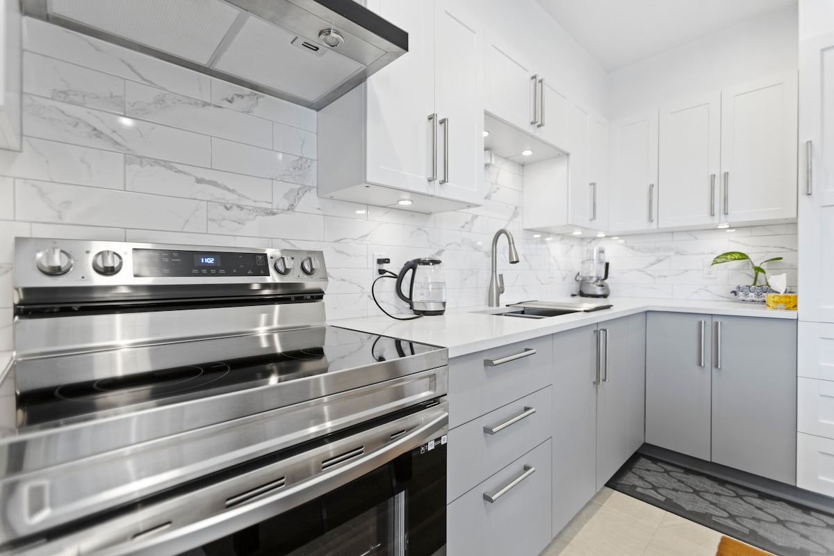 All-inclusive lägenhet på andra våningen med en stor balkong och reserverad parkering i ett lugnt grannskap. Ljusgrå från tak till golv. Mycket utrymme, modern design med kvartsbänkskök och lyxiga vinylgolv. Endast 15 minuter till Downtown Montreal.
