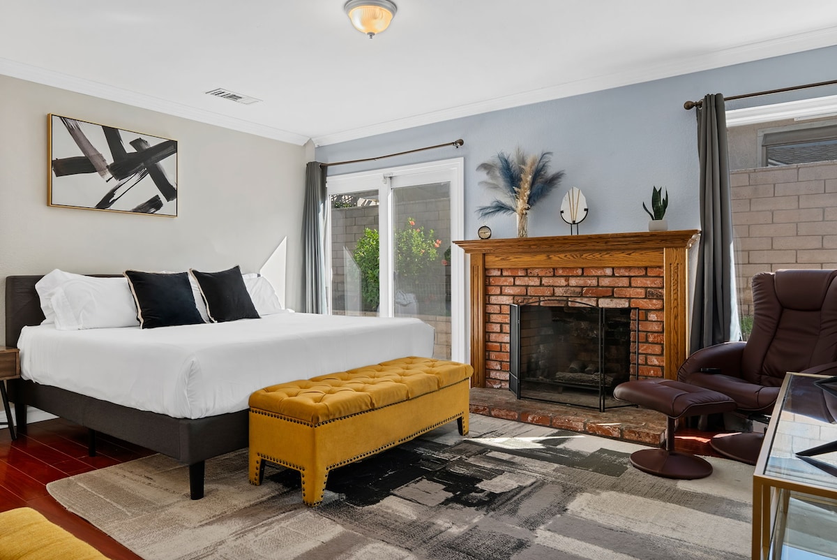 LA CASITA Inbäddat i ett avskilt bostadsområde på en sluttning kombinerar vår Poolside Casita sömlöst lugn och intimitet. Kliv in i poolområdet, med en öppen spis, och njut av atmosfären av en kalifornisk kväll vid den varma, glödande elden. La Casita är utformad för komfort och avkoppling och lovar en föryngrande natts sömn. Bekvämt nära motorvägarna 60, 605, 10 och 57, samt en mängd shopping- och matställen, erbjuder gästhuset både lugn och tillgänglighet.