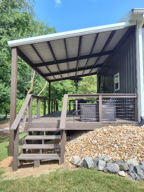 Denna stuga i lodge-stil är den perfekta tillflyktsorten i Hot Springs! Från de tallklädda väggarna till det täckta bakre däcket med utsikt över fastigheten kommer du att koppla av i samma ögonblick du anländer! Vår rustika moderna reträtt har en sittgrupp, pentry, king size-säng med bekväma sängkläder och ett eget badrum med en anpassad dusch! Du kommer att älska att sitta på verandan med ditt morgonkaffe och planera ditt äventyr för dagen!